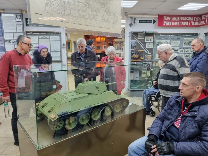 В преддверии празднования Дня Победы наши проживающие побывали на тематической экскурсии в Музейно-мемориальном комплексе «История танка Т-34». Прохладная погода, пасмурное утро и отдаленность музея не остановили наших проживающих от посещения данного мероприятия, ведь именно на Дмитровском направлении летом 1917 года испытывался первый русский тяжелый танк Н.Н.Лебеденко, а в декабре 1941 года с этого ближайшего к Москве рубежа пошли в контрнаступление «тридцатьчетверки» и начался главный этап битвы за Москву. Экскурсовод Александр Владимирович рассказал нашим подопечным о процессе создания танка и его уникального двигателя, о людях, создавших эту удивительную машину и долгие годы бывшие засекреченными. Экскурсанты увидели экспонаты из личных архивов известных танковых историков, танкистов и танкостроителей, ветеранов Великой Отечественной войны и военачальников. Услышали истории о подвигах героев-танкистов. Ну, и конечно же, разобрали тему стратегической роли танка Т-34 в битве под Москвой.