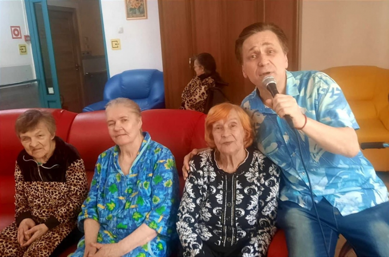С маломобильными жителями нашего Центра проводится вокальная терапия на этажах. Знакомые мелодии радуют проживающих, они подпевают любимые шлягеры вместе с нашим культорганизатором Михаилом Михайловым.
