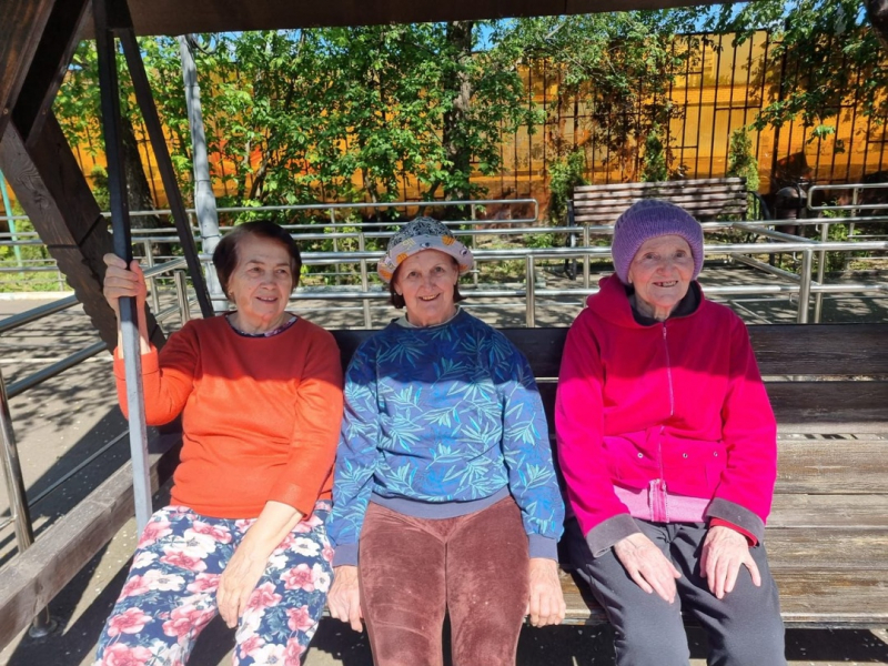 Пожилые люди, которые по состоянию здоровья не имеют возможности самостоятельно выходить на улицу, с удовольствием гуляют на свежем воздухе в сопровождение специалистов Центра.