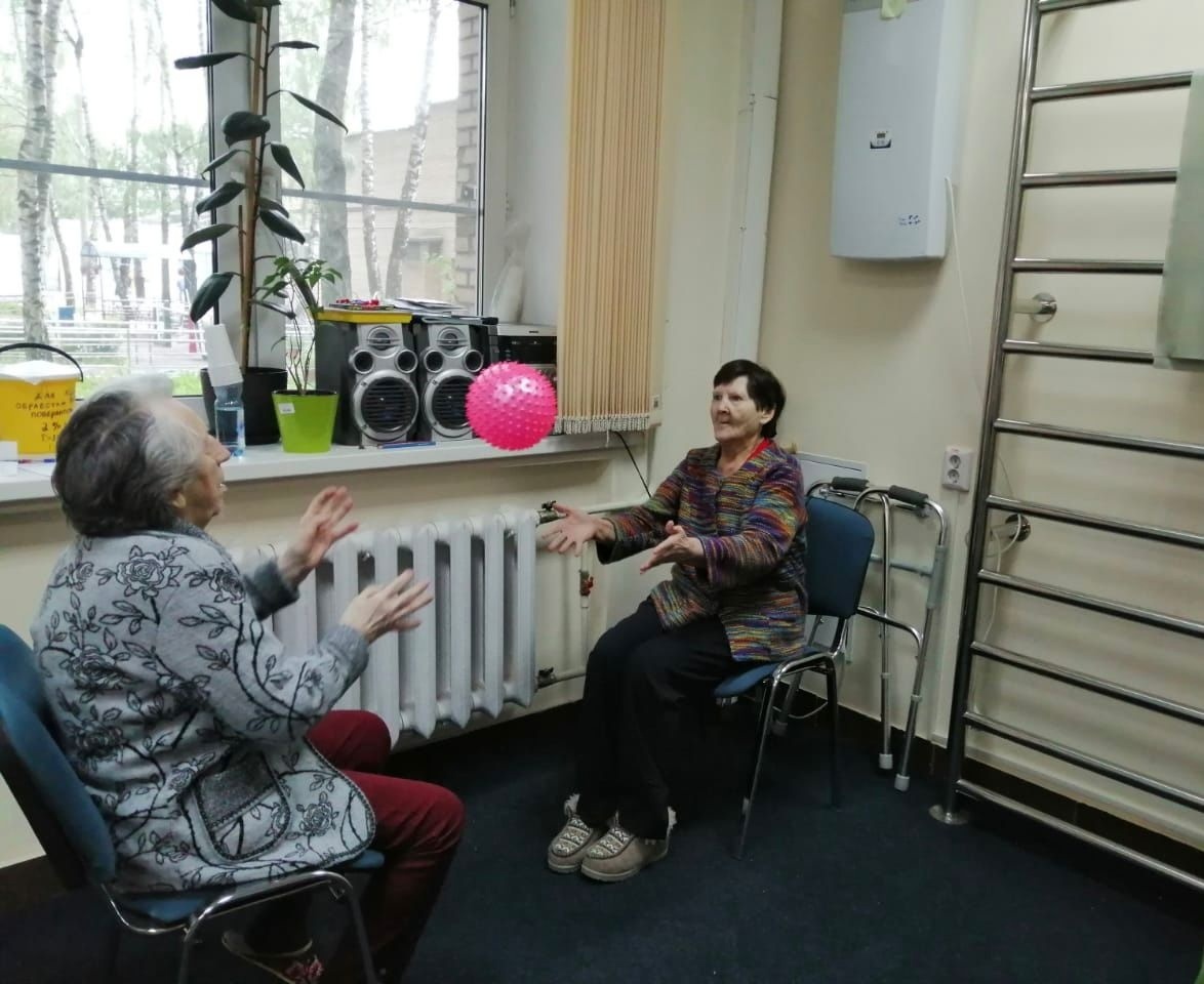В течение дня инструктор ЛФК проводит с маломобильными гражданами индивидуальные и групповые занятия в тренажерном зале и Отделениях. Под его контролем применяются различные современные технологии лечебной физкультуры, в игровой и оздоровительной форме, в том числе занятия на тренажере «Мотомед» и мобильном подъемнике-вертикализаторе для инвалидов Rifton Tram с функцией тренажера ходьбы для пассивного и активного перемещения в пространстве. Любители логических задач устремились на встречу с психологом в клуб «Жизнь в красках». Занятия в клубе способствуют поддержанию когнитивных функций пожилых людей и заряжают позитивом на целый день.