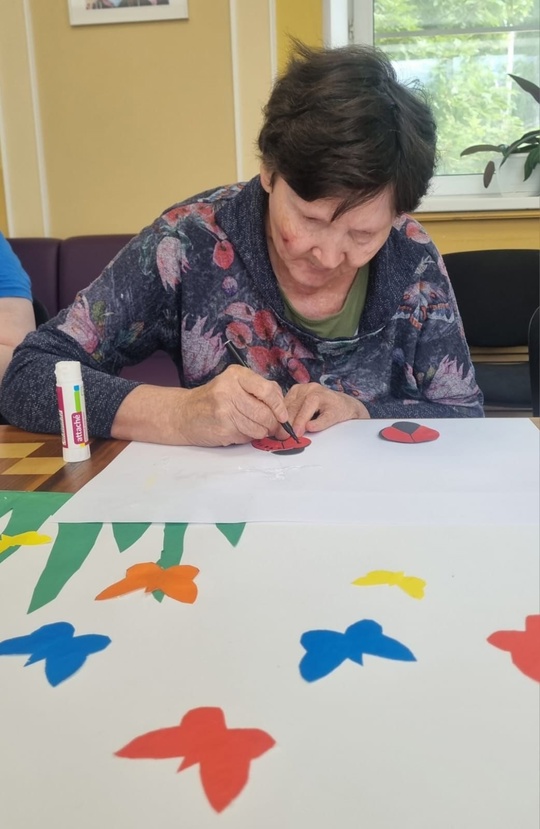 Сегодня проживающие Геронтологического центра «Северное Тушино» участвовали в творческом мастер-классе и создавали коллективную поделку «Лето – это маленькая жизнь». Используя цветную бумагу, клей, цветные карандаши и фломастеры участники мероприятия перенесли на ватман самые лучшие мгновения летнего сезона. Яркие полевые цветы, пестрые бабочки, божьи коровки, солнечные лучики и зеленая трава, что еще надо для хорошего настроения? Теплое! Зеленое! Доброе! Яркое! Веселое! – вот такое лето у наших проживающих. А дружной совместной работой все остались довольны, ведь поделки получились сочные и красочные!