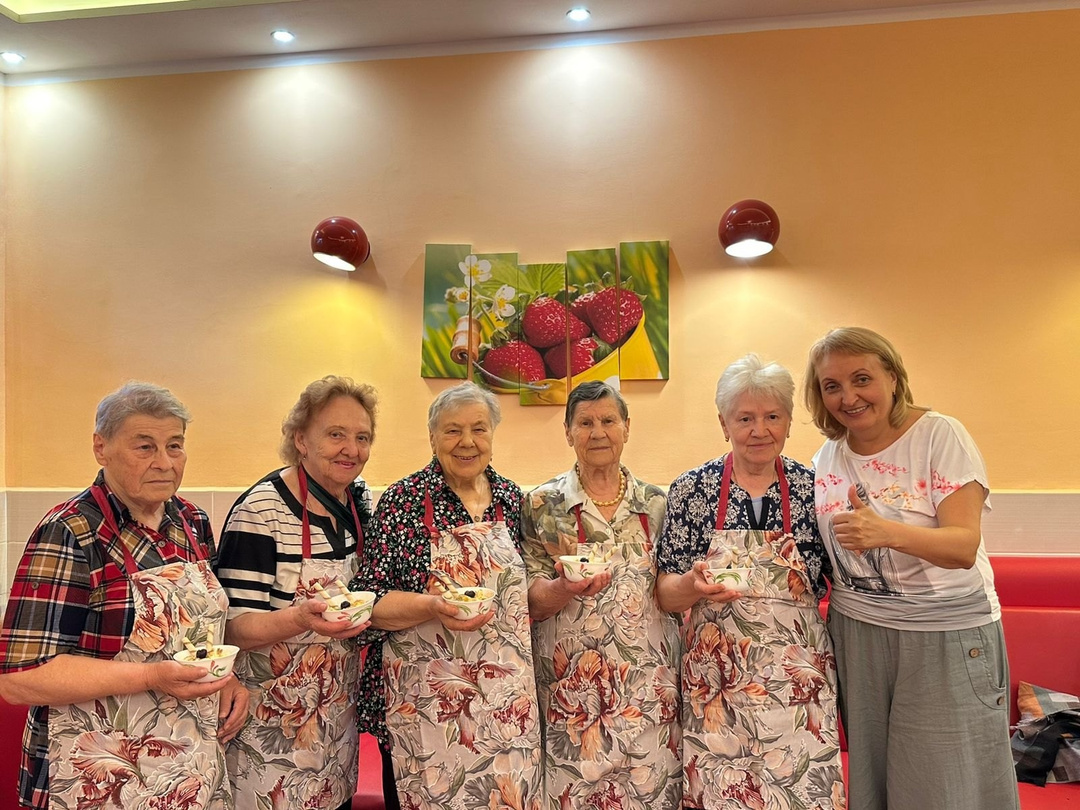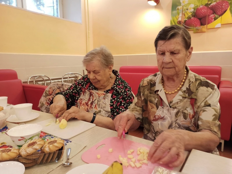 Лето богато разнообразием сезонных фруктов и ягод. И сегодня участники клуба "Вкусно дома" приготовили фруктовый салат, используя яблоки, апельсины, бананы, киви и вишню. Руководила процессом Светлана Дмитриевна, а Нина Павловна, Нина Ивановна и Светлана Евгеньевна ей активно помогали. Перед приготовлением фрукты вымыли и почистили. Яблоки, апельсины, киви порезали кубиками, бананы кружочками. Перед подачей заправили греческим йогуртом, украсили вишней и вафельными трубочками. Во время дегустации говорили о пользе овощей и фруктов, о том, что они являются составляющими летнего стола, пополняя организм необходимыми витаминами. Нина Ивановна поделилась впечатлениями:"Такой салат не только освежает, заряжает бодростью, но и дарит отличное настроение!"