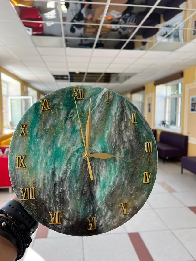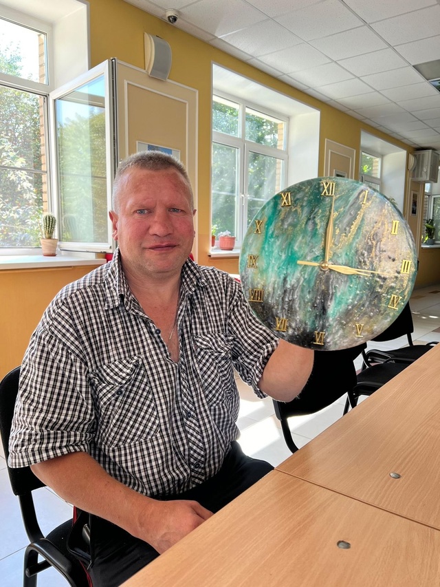 Сегодня В нашем Геронтологическом центре «Северное Тушино» произошло замечательное событие! Один из наших талантливых жильцов решил проявить свои творческие способности и создал оригинальные часы из эпоксидной смолы. Этот проект стал не только увлекательным хобби, но и прекрасным способом выразить себя и сделать что-то уникальное.