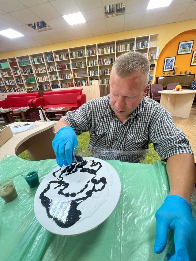 Работа с эпоксидной смолой требует терпения и внимательности, но наш подопечный с легкостью справился с задачей. В процессе он изучил все этапы создания — от подготовки формы до заливки смолы и украшения готового изделия.