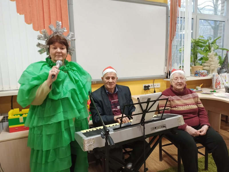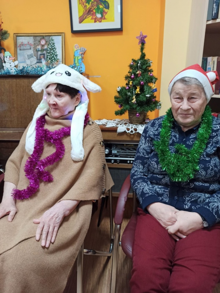 Для придания волшебной атмосферы мероприятию, наши проживающие использовали карнавальные костюмы и светящиеся маски. Под звуки электронной музыки, в исполнении Владимира Петровича, участники встречи пели любимые новогодние песни и колядки.Яркую ноту празднику придала викторина "Истории Старого Нового года". Бурное обсуждение и веселье вызвала информация, что изначально в Европе елки подвешивали к потолку макушкой вниз!