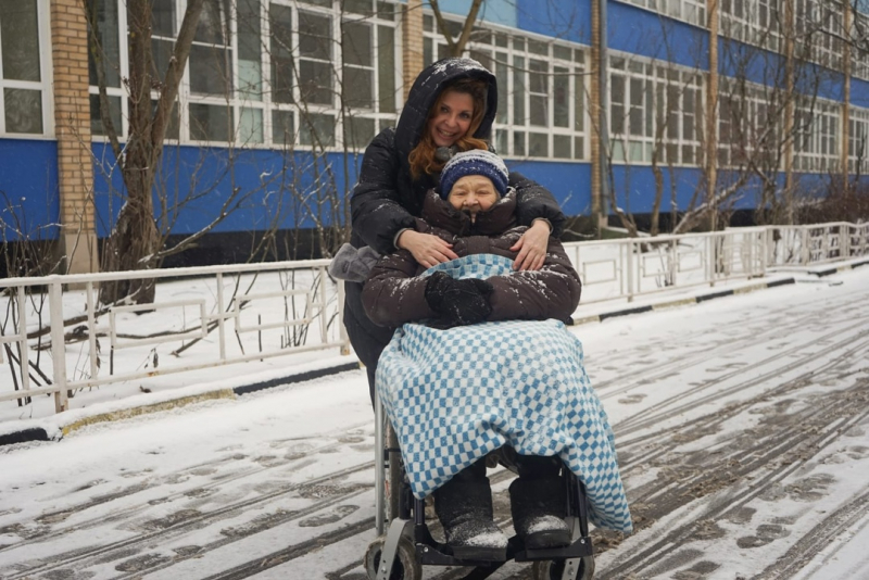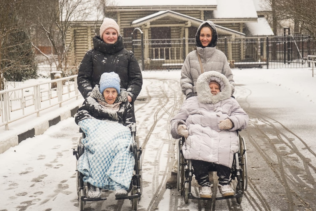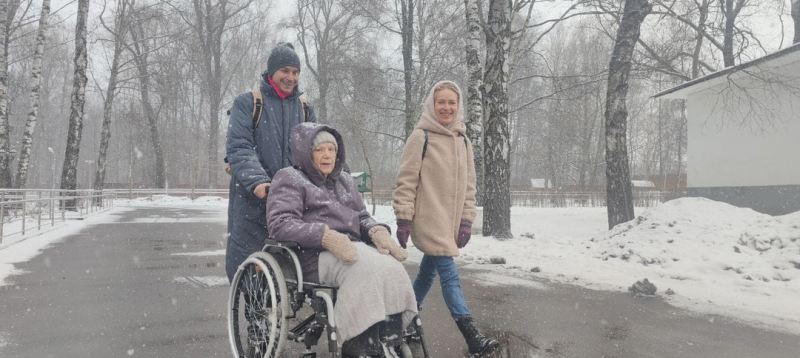 В любое время года, еженедельно, наши жители, которые в силу своего здоровья могут передвигаться только на креслах-колясках, выходят с волонтерами Фонда «Старость в радость» на прогулку, по организованному терренкуру.