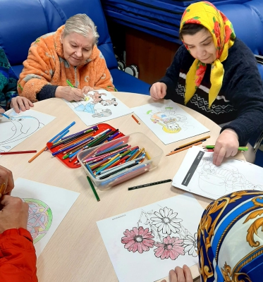 Большое внимание в программе досуга специалисты нашего Геронтологического центра уделяют креативным мастер-классам. Сегодня на занятии наши подопечные создавали аппликацию «Ваза с цветами».