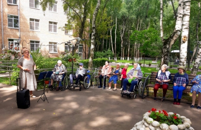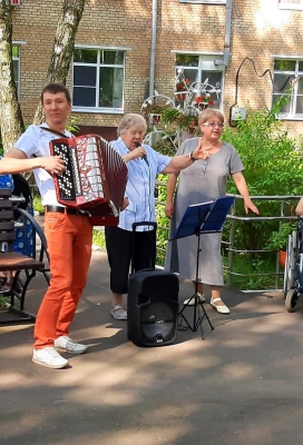 " Поющие сердца". Проживающие нашего ГЦ" Северное Тушино" в летнее время проводят большую часть времени дня на прекрасной ,ухоженной территории, окружающей наш дом.