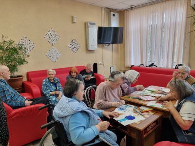 Арт – терапия представляет собой одно из направлений психотерапии искусством. Специалисты нашего Геронтологического центра предлагают своим подопечным нарисовать тематические картины или делать раскраски по своему желанию. Арт-терапия даёт пожилым людям возможность сконцентрироваться на процессе, что является естественной формой коррекции эмоционального состояния.