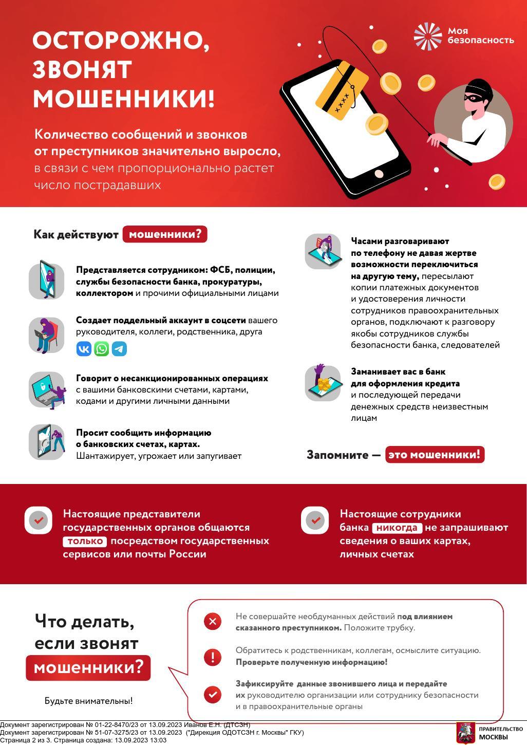 4. В случае сообщения по телефону о сомнительных операциях с банковскими счетами и картами, происшествиях с родственниками, проверяйте эту информацию по официальным телефонам банка, правоохранительных органов.