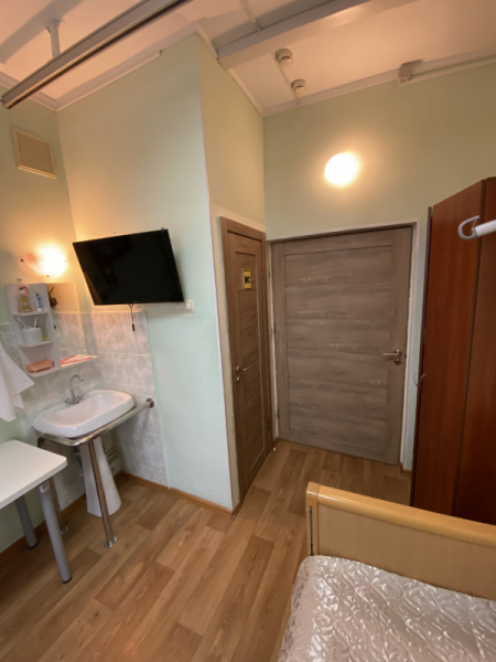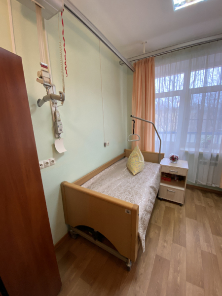 В нашем центре комнаты для проживания имеют все самое необходимое как для людей передвигающихся, так и для находящихся на постельном режиме или передвигающихся в пределах палаты с посторонней помощью (функциональные кровати, ортопедические и противопролежневые матрацы, подъемники, кресла-коляски, ходунки, трости и др. приспособления). Все комнаты оборудованы прикроватной тумбой, столиком, телевизором, холодильником. В каждой комнате находиться свой санузел (душевая), обустроенный для людей с ограниченными возможностями.
